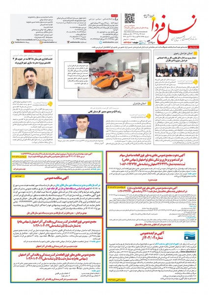 متن آگهی منتشر شده در روزنامه نسل فردا به شماره 7696 و تاریخ 25 مرداد ماه 1404به شرح زیر است:
